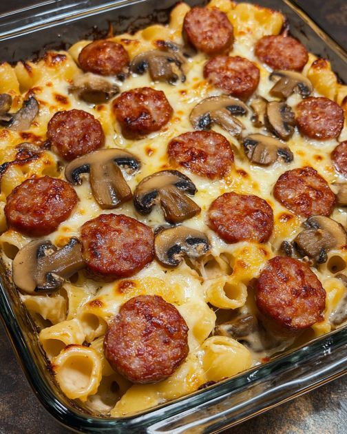 This Oven-Baked Sausage and Mushroom Pasta Gratin is the ultimate comforting pasta dish. It features tender pasta and savory Italian sausage in