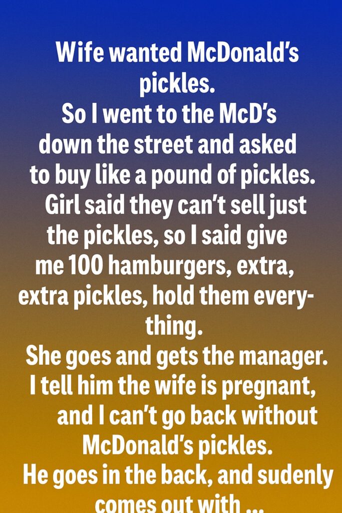 One evening, my wife had a sudden craving for McDonald’s pickles. Knowing how important it was to her, especially now