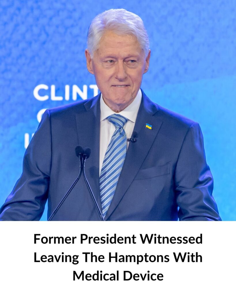 Former President Bill Clinton was seen at a New York airport leaving the Hamptons with a defibrillator among his luggage,