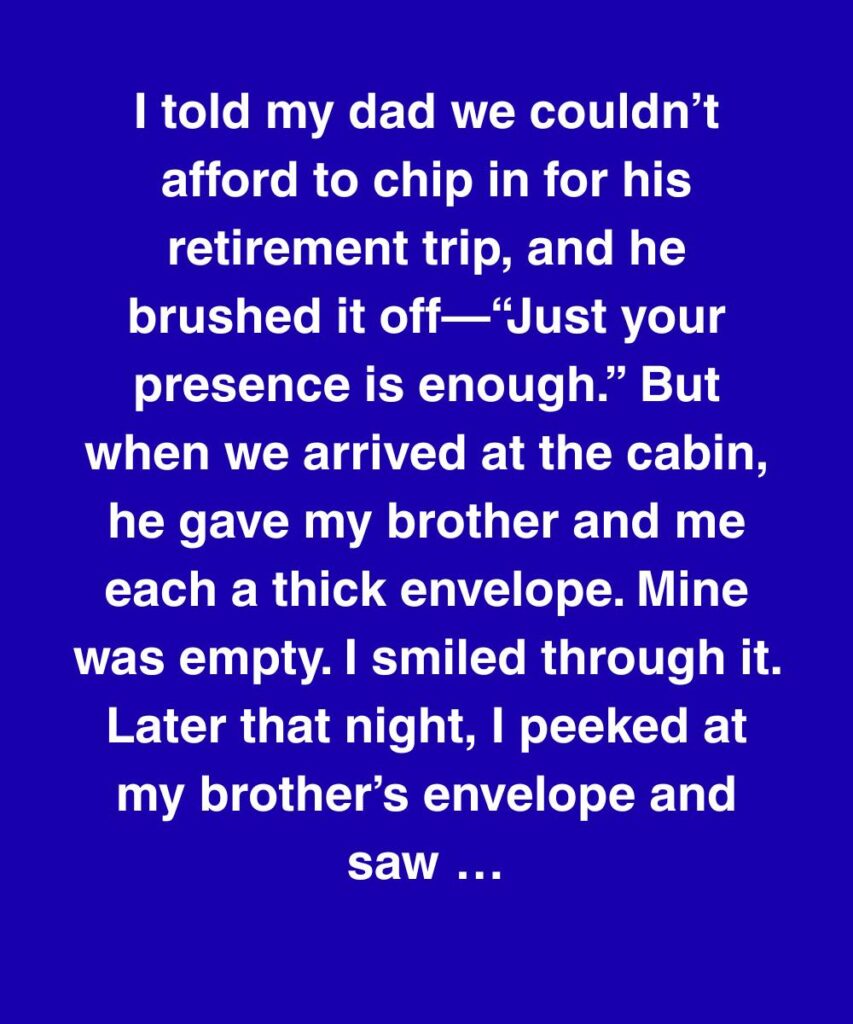 I told my dad we couldn’t afford to chip in for his retirement trip, and he brushed it off—“Just your