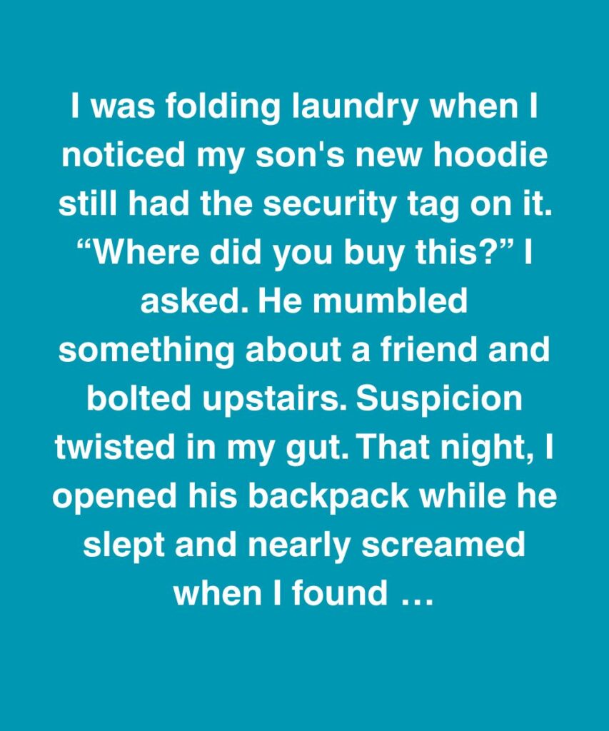 I was folding laundry when I noticed my son’s new hoodie still had the security tag on it. “Where did
