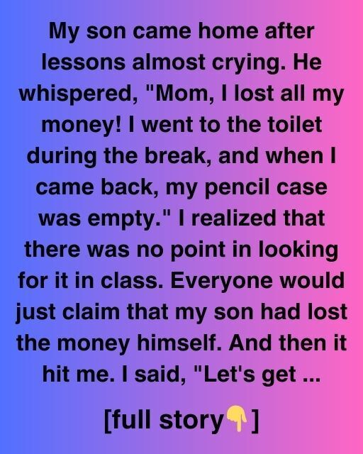 My son came home after lessons almost crying. He whispered, “Mom, I lost all my money! I went to the