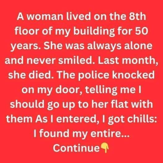 For 50 years, a woman on the 8th floor of my building lived alone, feared for her cold demeanor and