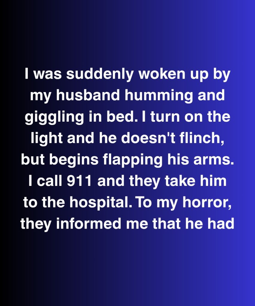 I was suddenly woken up by my husband humming and giggling in bed. I turn on the light and he