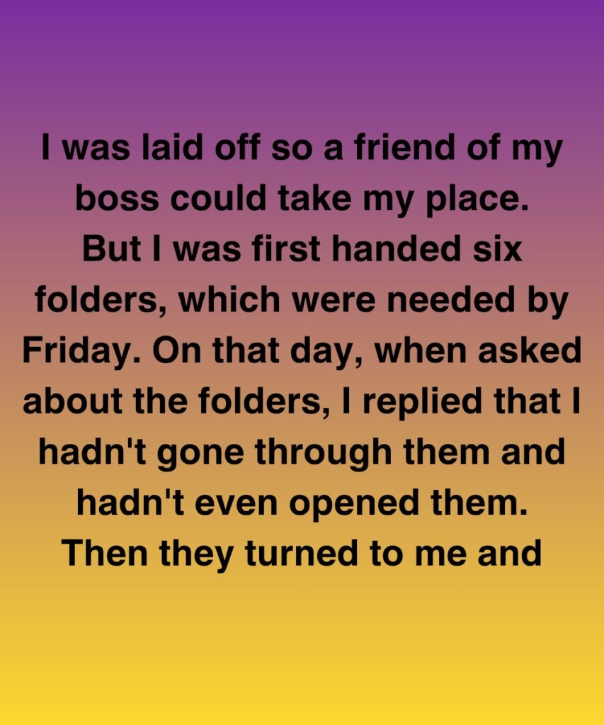 I was laid off so a friend of my boss could take my place.But I was first handed six folders,