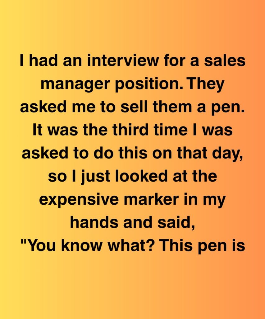 “I had an interview for a sales manager position. They asked me to sell them a pen. It was the