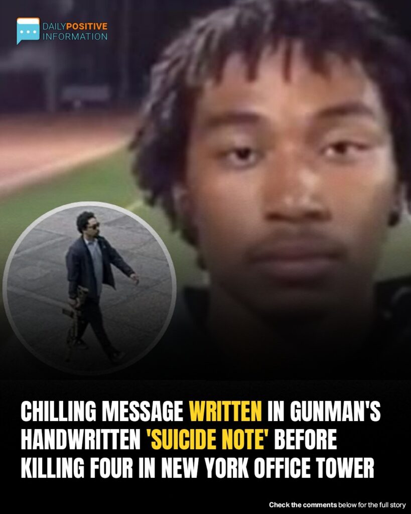 The handwritten “suicide note” that the gunman left before killing four people in an office tower in New York has