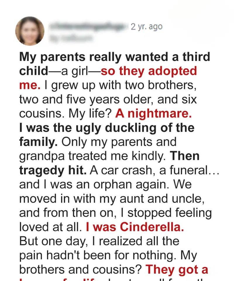 I was just three when my adoptive parents brought me home.After years of trying for a third child—a daughter to
