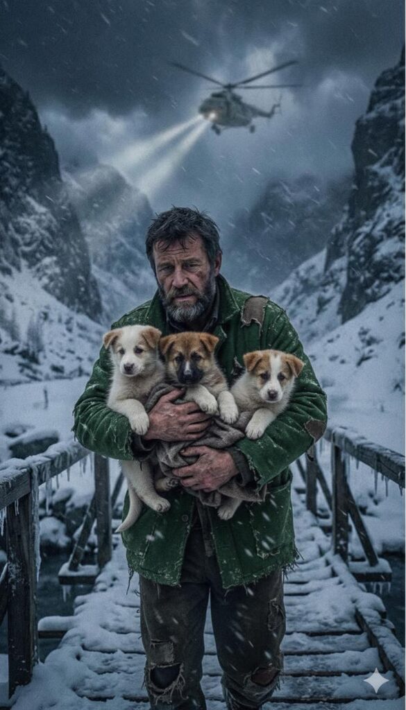 Darkness swallowed the room. He slid to the floor, pulled the puppies tight against his chest, and listened with his whole body. The third sound wasn’t an explosion—it was mechanical. A whine rising to a scream, then silence.
