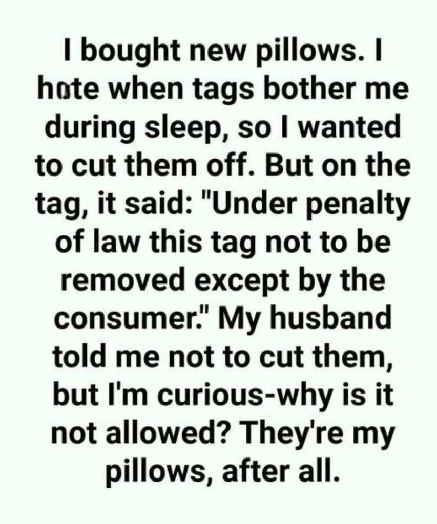 If you’ve ever hesitated to snip off that annoying tag on your pillow, you’re not alone. The bold warning—“UNDER PENALTY OF LAW THIS TAG NOT TO BE REMOVED EXCEPT BY THE CONSUMER”—has made many second-guess a quick trim. But don’t worry: removing the tag is perfectly legal if you’re the buyer.