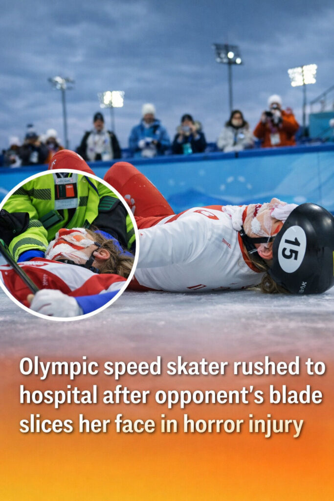 A frightening crash during the Women’s 1500-meter short track quarterfinal at the 2026 Milan-Cortina Winter Olympics left spectators in shock after Polish skater Kamila Sellier suffered a serious facial injury. The incident occurred when Team USA’s Kristen Santos-Griswold lost balance during an illegal lane pass. As she fell, her skate blade struck Sellier near the eye, causing a deep cut. Italy’s Arianna Fontana was also involved, and the race was immediately stopped as medical teams rushed onto the ice.