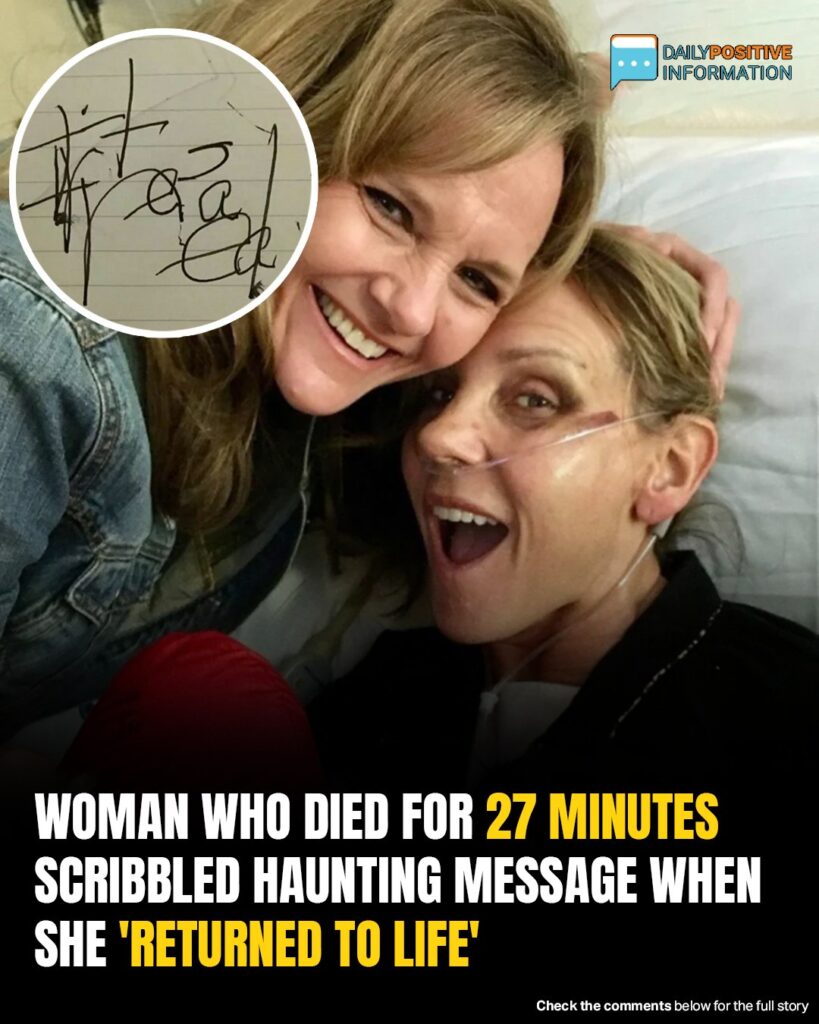 After being declared medically dead for an astounding 27 minutes, one woman had an interesting reaction when she was revived. She wrote a disturbing note that seemed to point to one intriguing thing.