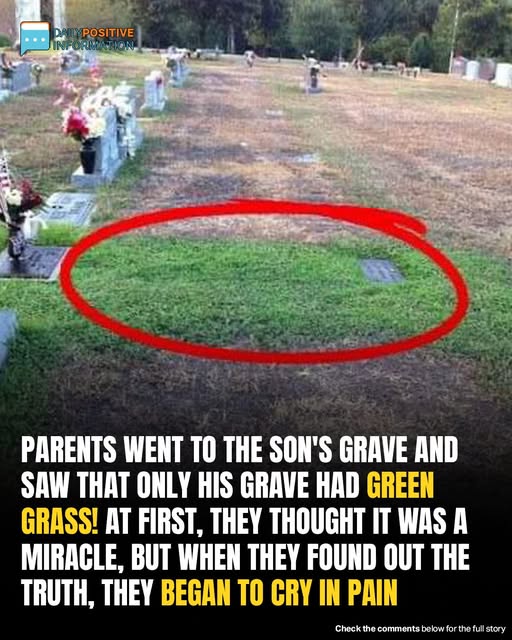 They were paying their respects at the Garden Park Cemetery in Arlington, Texas, when they saw something peculiar: a trail of lush, green grass led from their son’s tomb to the surrounding soil.
