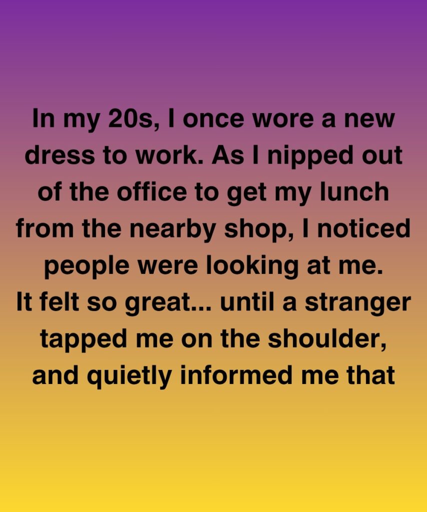 I laughed nervously, thanked her, and quickly pulled the tag off, but inside, I felt embarrassed. All morning I had been walking around thinking people were admiring my new dress. Now I realized they were probably smirking or whispering about the dangling tag. It was such a small thing, but at that age, appearances mattered so much to me. I walked back to the office feeling smaller, my head down, just hoping no one else had noticed.